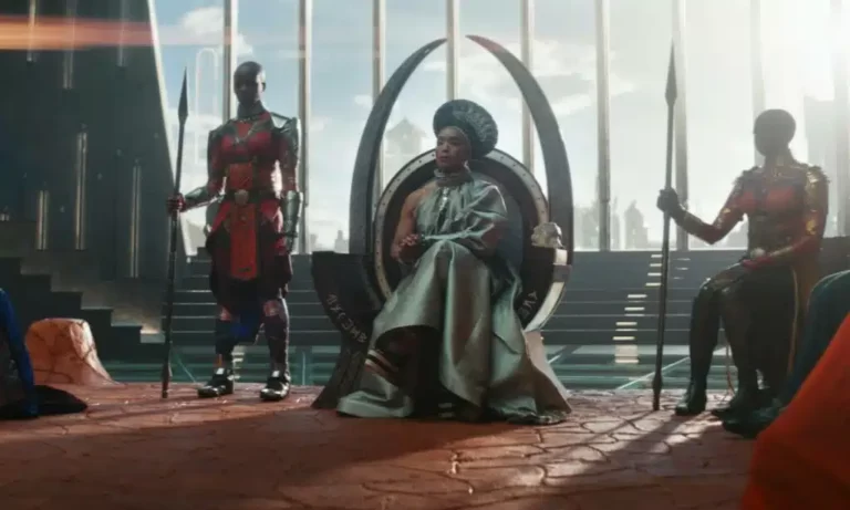 Em ‘Pantera Negra: Wakanda Para Sempre’, a Rainha Ramonda (Angela Bassett), Shuri (Letitia Wright), M’Baku (Winston Duke), Okoye (Danai Gurira) e as Dora Milaje lutam para proteger sua nação contra as potências mundiais logo após a morte do Rei T’Challa.