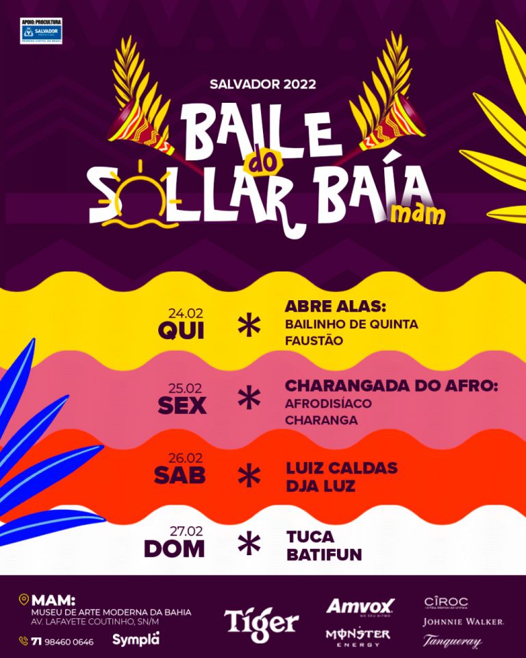 Todo mundo com saudade de celebrar o Carnaval de Salvador, né? Afinal, 2021 passou batido e esse ano também não vai rolar. Pensando nisso, a organização do Sollar Baía caprichou na programação para o fim de fevereiro e, de 24 a 27, a festa de Momo vai invadir o MAM (Museu de Arte Moderna).