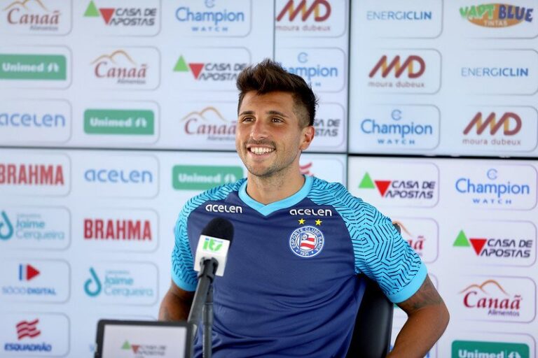 O Bahia anunciou nos últimos dias a renovação com o meio-campista Lucas Mugni. Em entrevista coletiva realizada nesta sexta-feira (16) na sala de imprensa do CT Evaristo de Macedo, o atleta falou sobre a alegria de ficar mais um ano com o Tricolor.