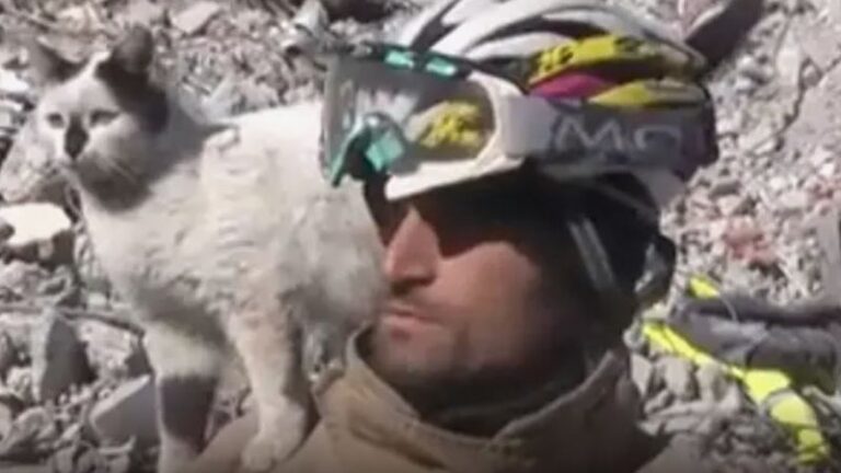Um vídeo que circula nas redes sociais mostra um gato que se recusa a sair dos ombros do bombeiro que o resgatou após um terremoto na Turquia. Nomeado de “The Wreck”, termo em inglês que significa destroços, o animal chegou a ficar 129 horas preso.
