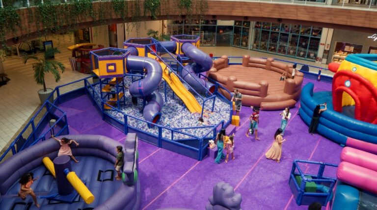Instalado na Praça de Eventos I até o dia 30 de abril, o parque convida as crianças a explorarem um universo colorido, de desafios e seguro. Entre as atrações, estão pula-pulas com formatos criativos, como escalada, avião e cratera, além de um kids play em forma de casinha, com tobogã e escorrega com piscina de bolinhas que garantem muitas risadas.