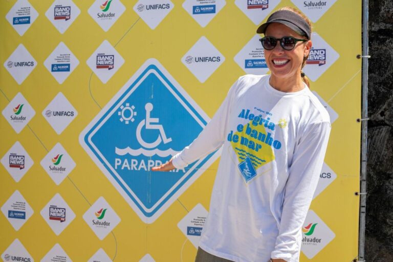“Domingo de verão na Bahia, com esse sol, esse calor e com muito amor. É uma alegria enorme estar aqui participando desta edição do ParaPraia, que é um projeto que promove o banho assistido e dá oportunidade a pessoas com deficiência ou com mobilidade reduzida a terem esse momento de lazer, de prazer e de muito conforto. Aqui, tem tantos voluntários e profissionais capacitados para estar junto, para colar e, principalmente, porque são pessoas que estão distribuindo e recebendo amor”, comenta Camila Marinho, que se emocionou ao entrar no mar com Manoel Genézio, que veio do interior para participar do projeto.